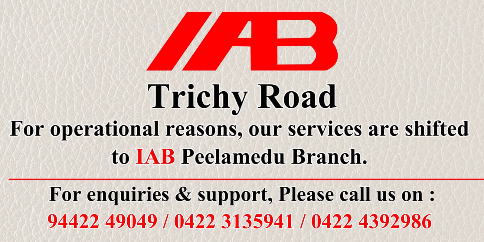 950, Cross Cut Road, Coimbatore - 641 012.Phone : +91 422 495259, 2495759, 4373993, 4373994Fax : +91 422 2495459Email : support@iabphotos.in